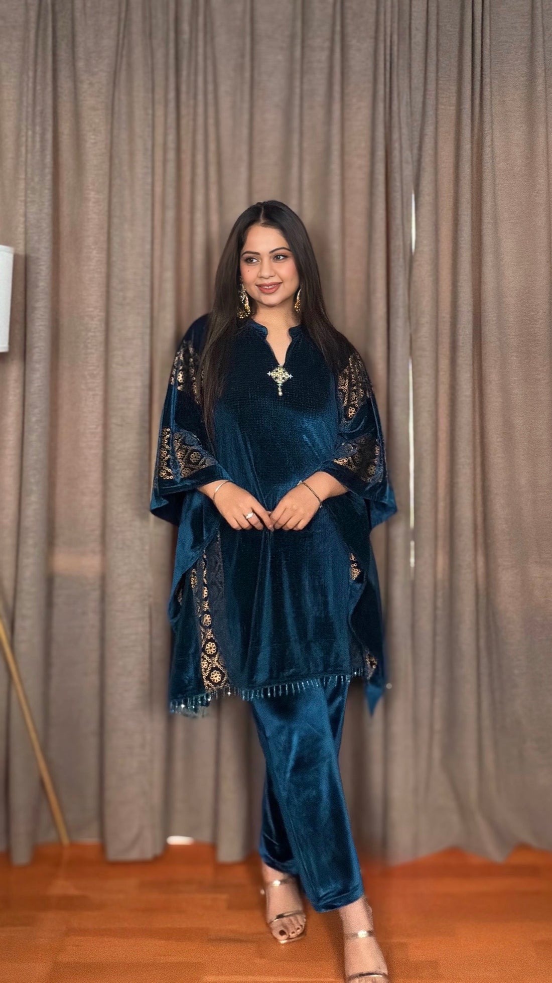 Elevate your winter style with Averia Blue, a premium velvet kaftan set crafted for effortless...