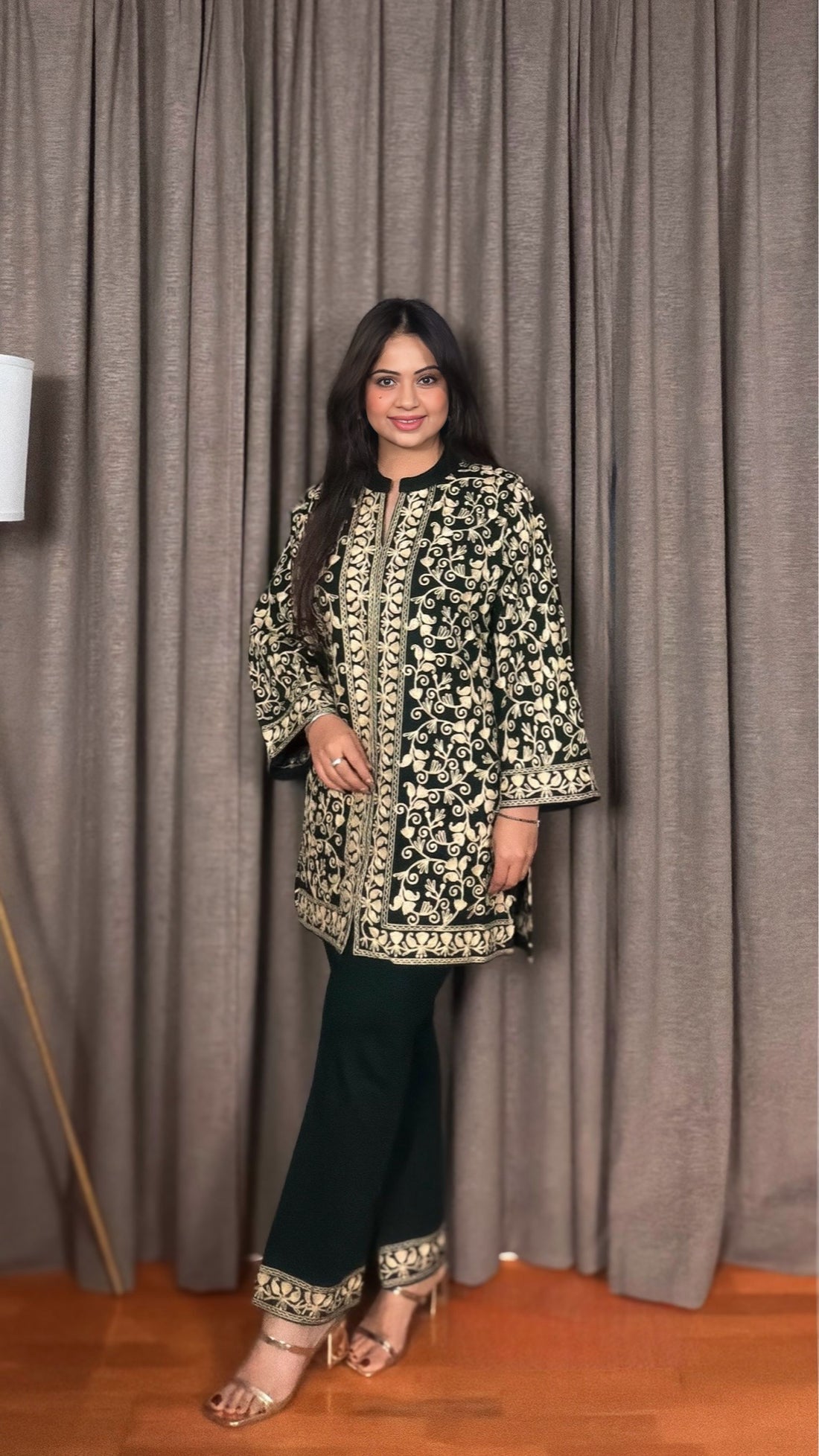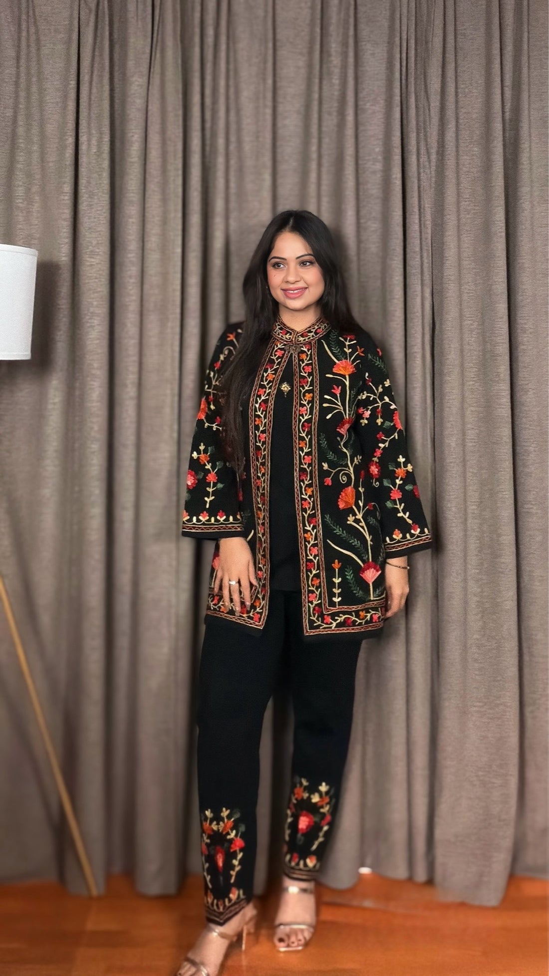 Zahra – Woolen Embroidered 3-Piece Shrug Set