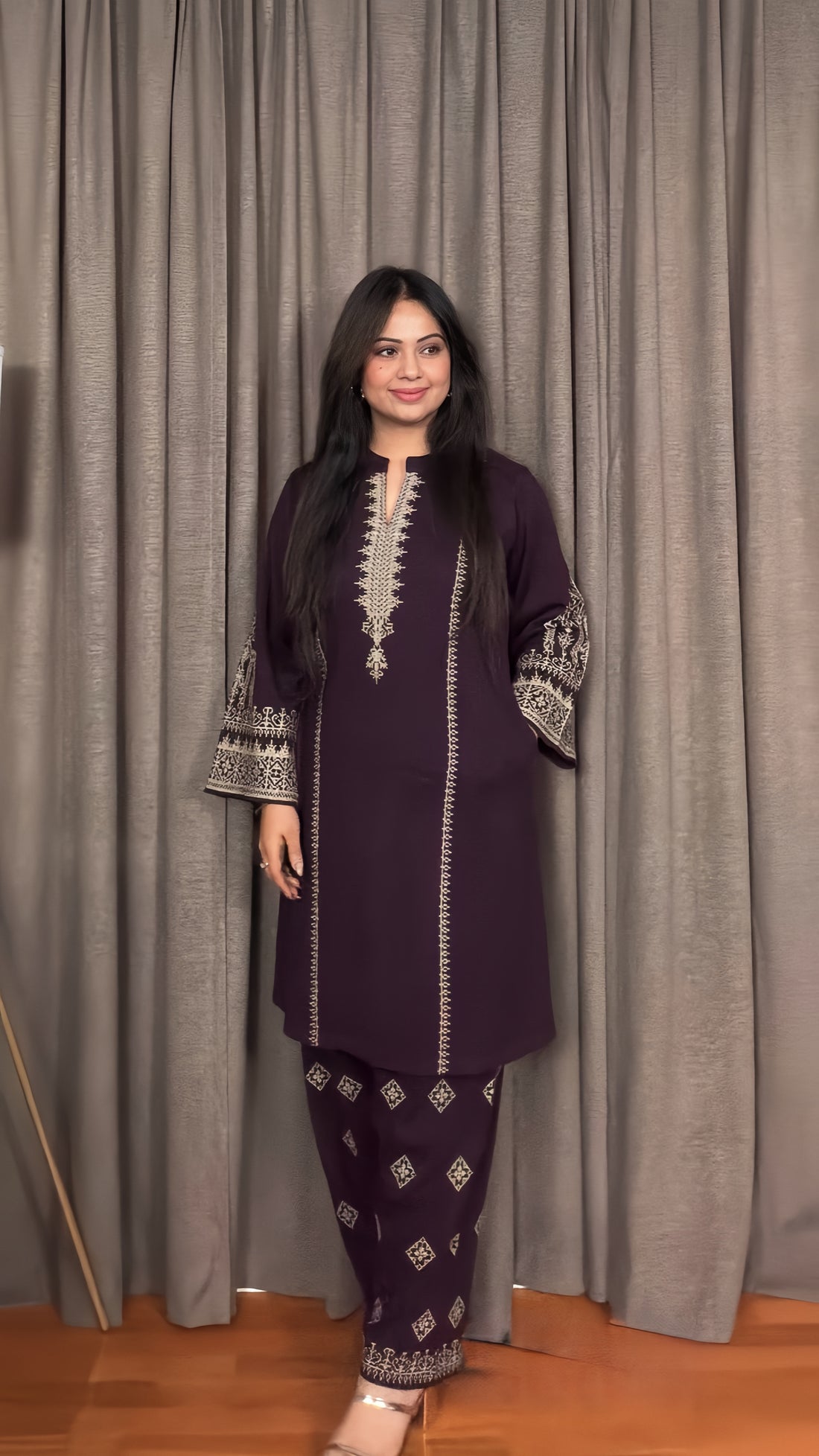 Stay warm, stylish, and effortlessly elegant in Myra Plum—a premium woolen suit set crafted in...