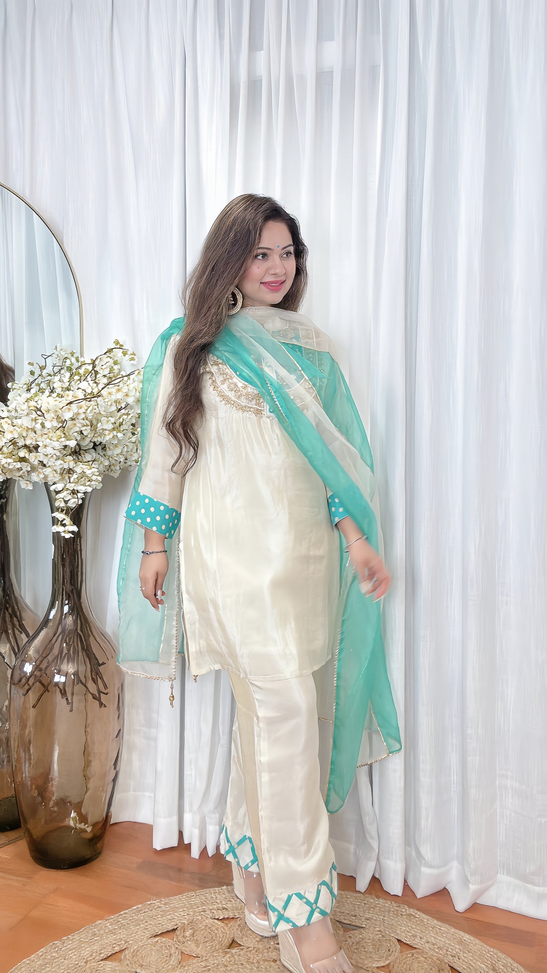 Turquoise Tide – Muslin Silk Patiala Salwar Set