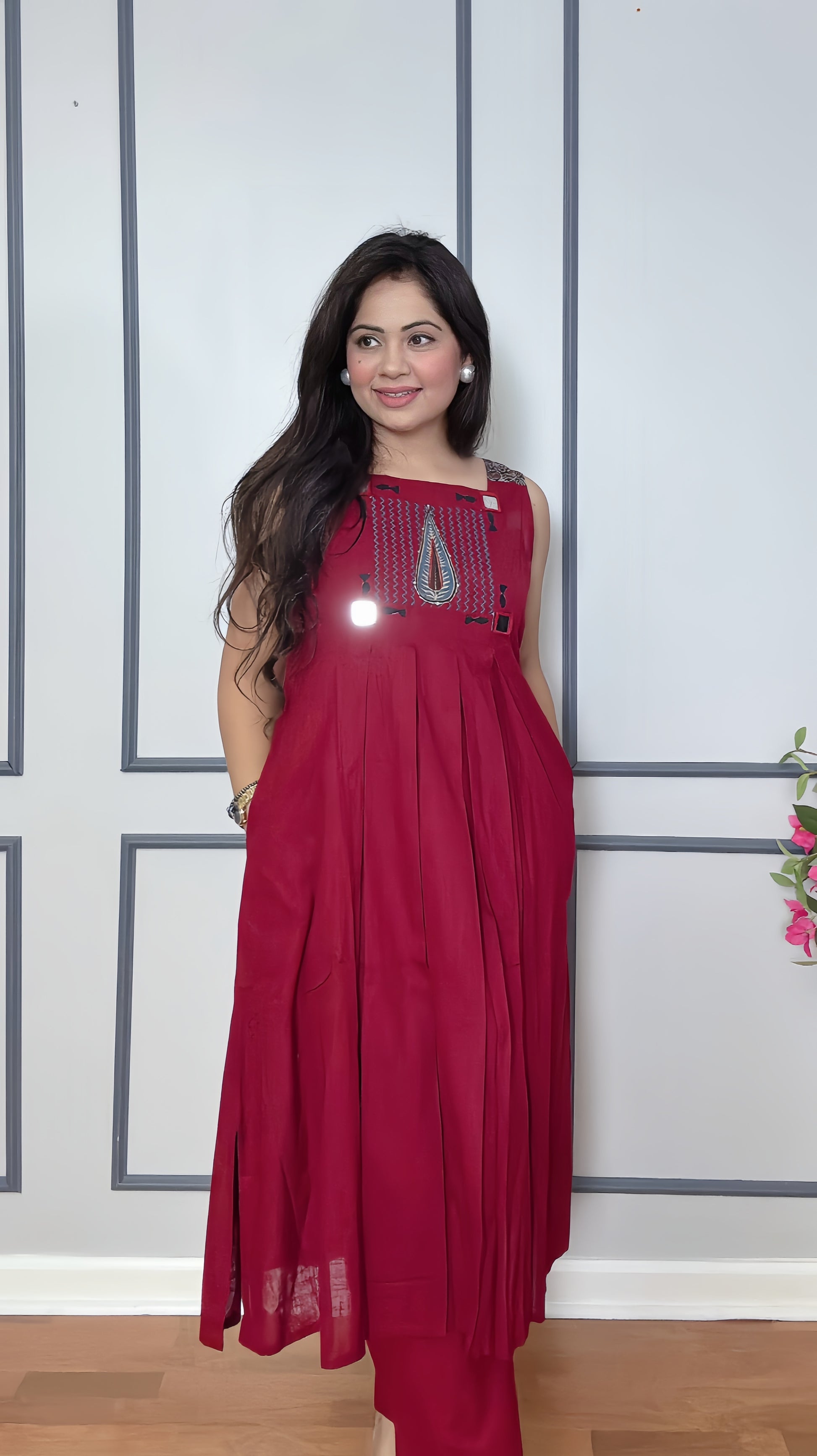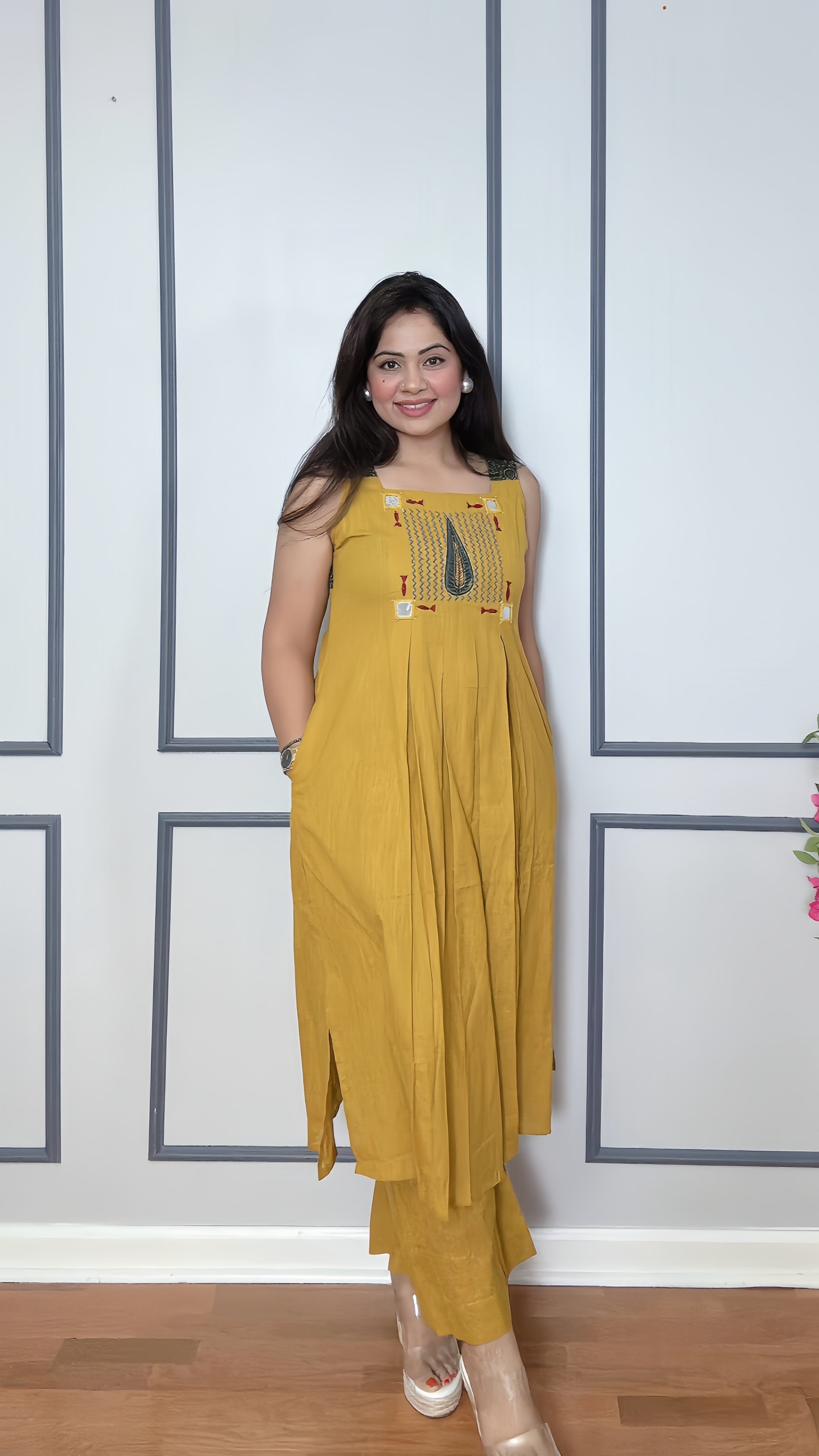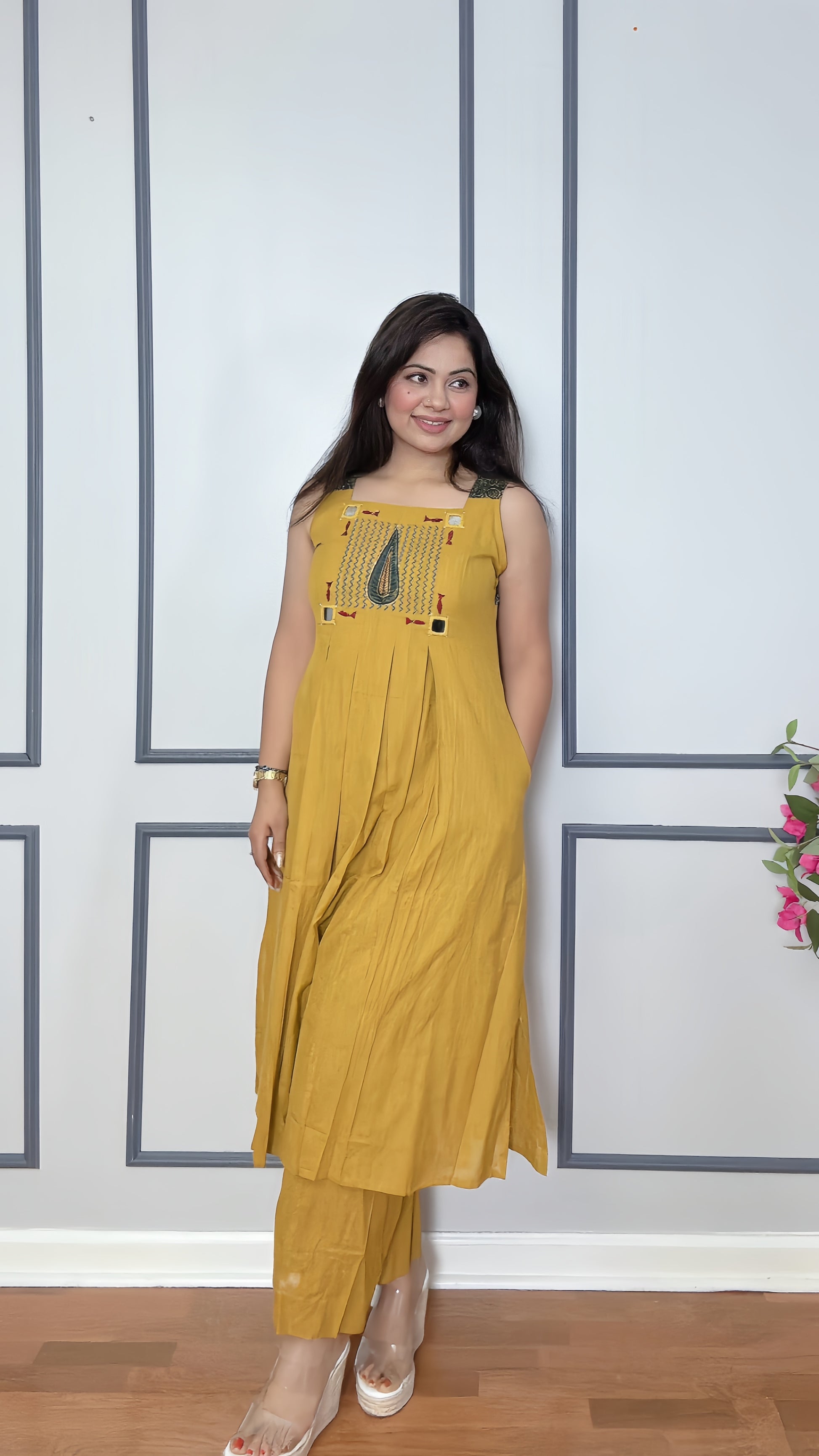 - Functional Design: Sleeveless kurta with pockets for convenience