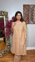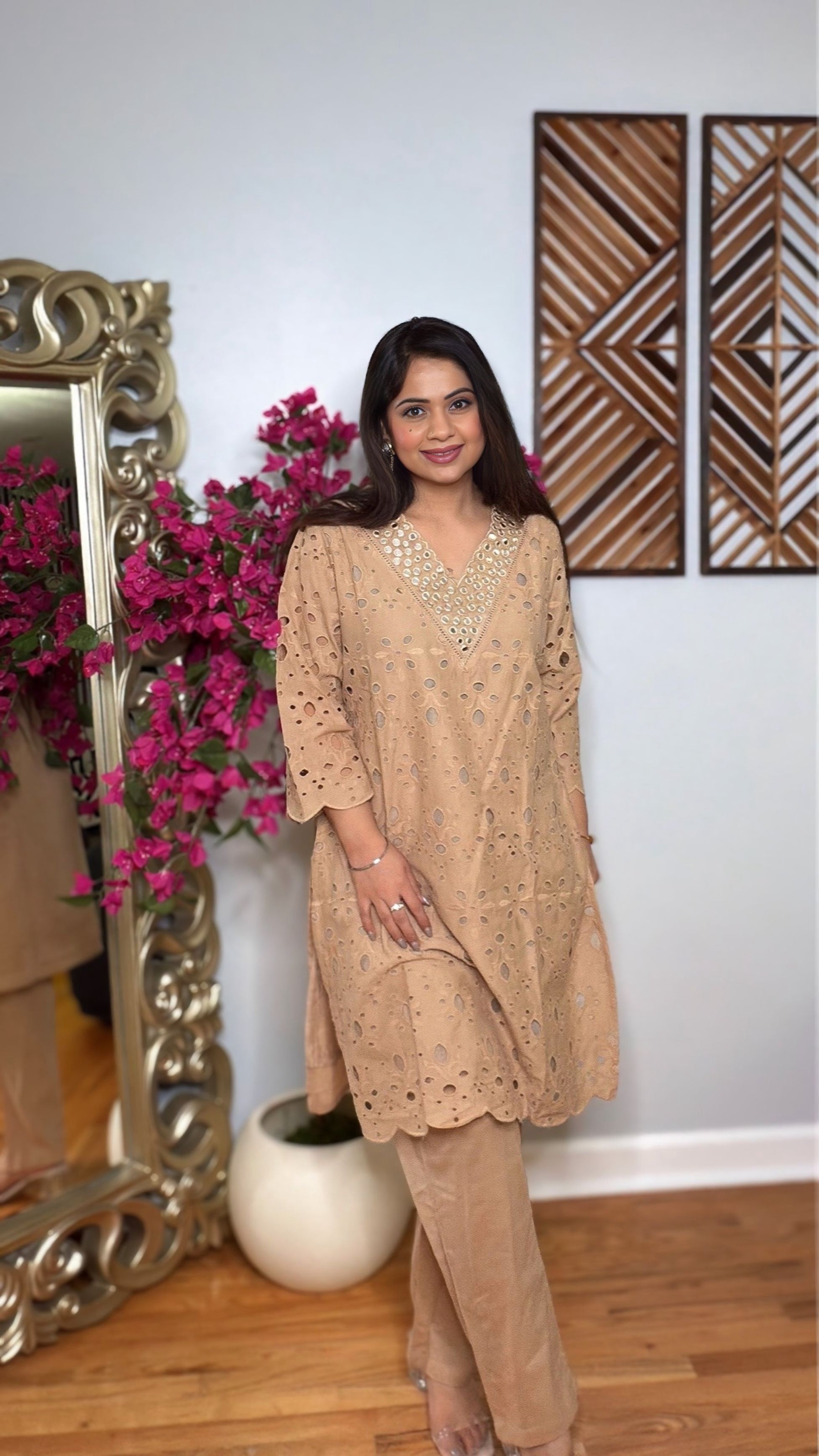 Upgrade your everyday ethnic wardrobe with our Aurelyn Schiffli Coord Set, crafted in premium breathable cotton for all-day comfort and effortless style. This beautifully designed coord set features intricate schiffli embroidery detailing throughout, adding a soft, feminine texture while keeping the look minimal and elegant.