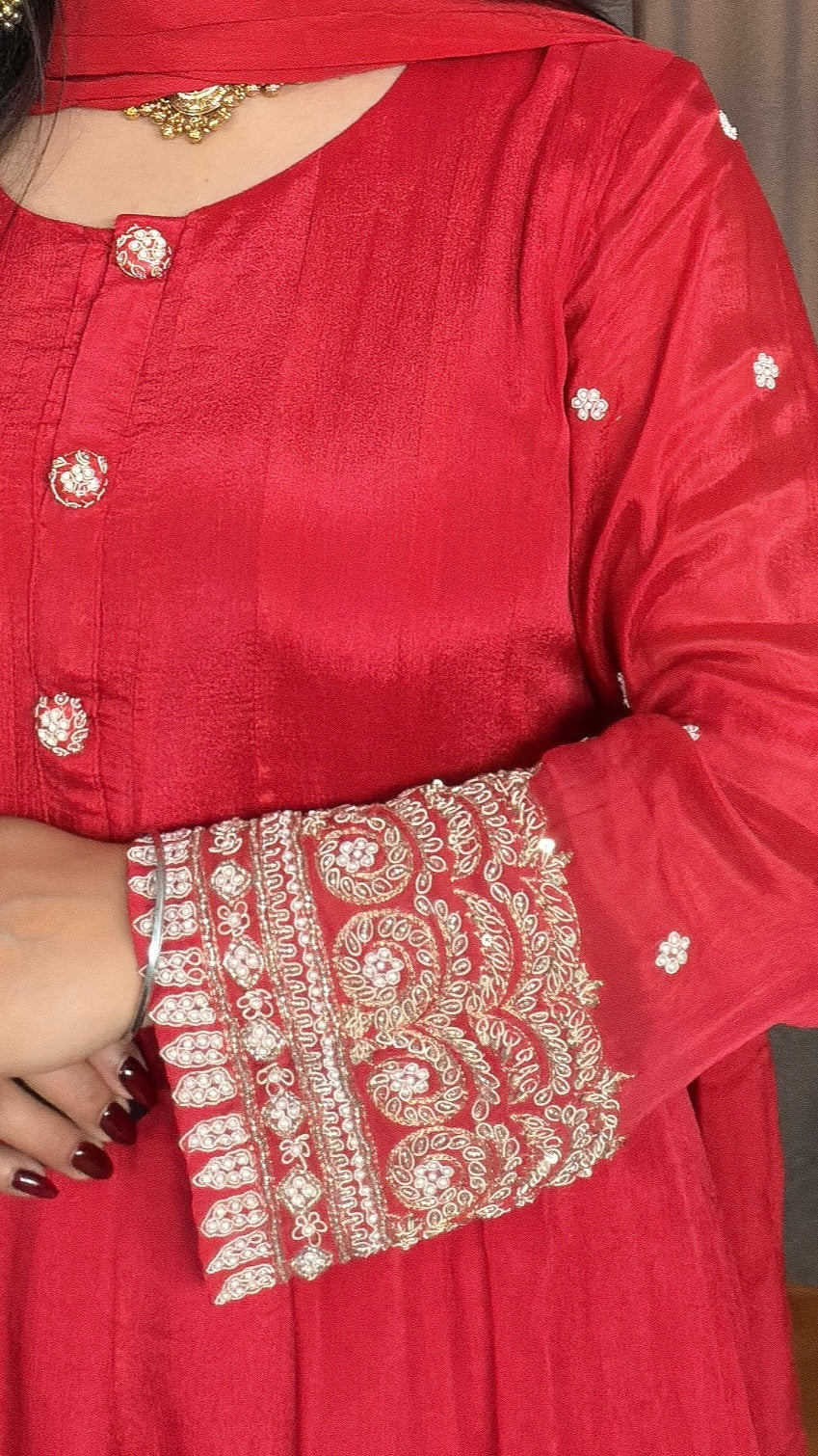 - Embroidery/Work Details: Intricate handwork zardozi embroidery on sleeves with pearl-embroidered dupatta.