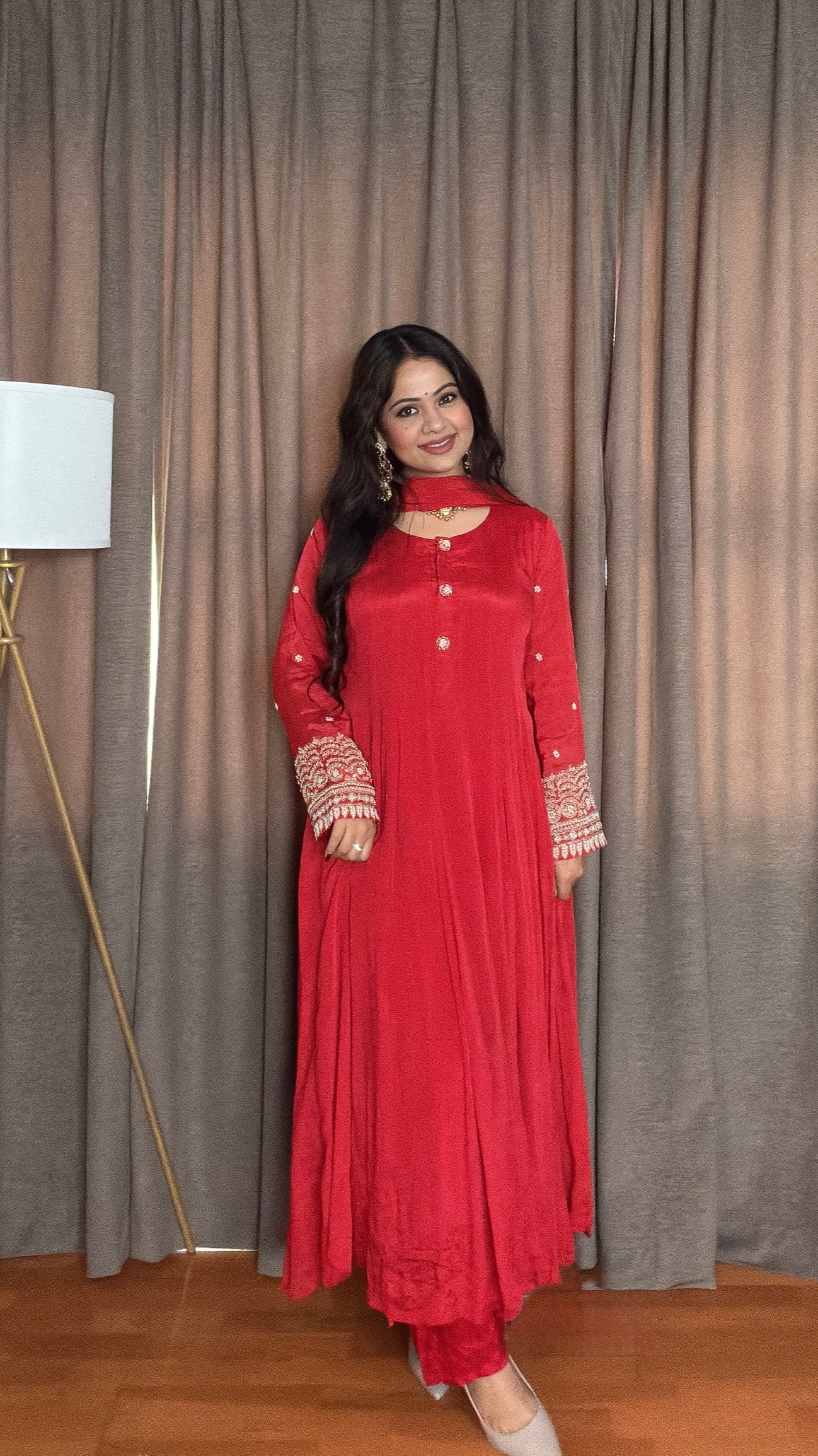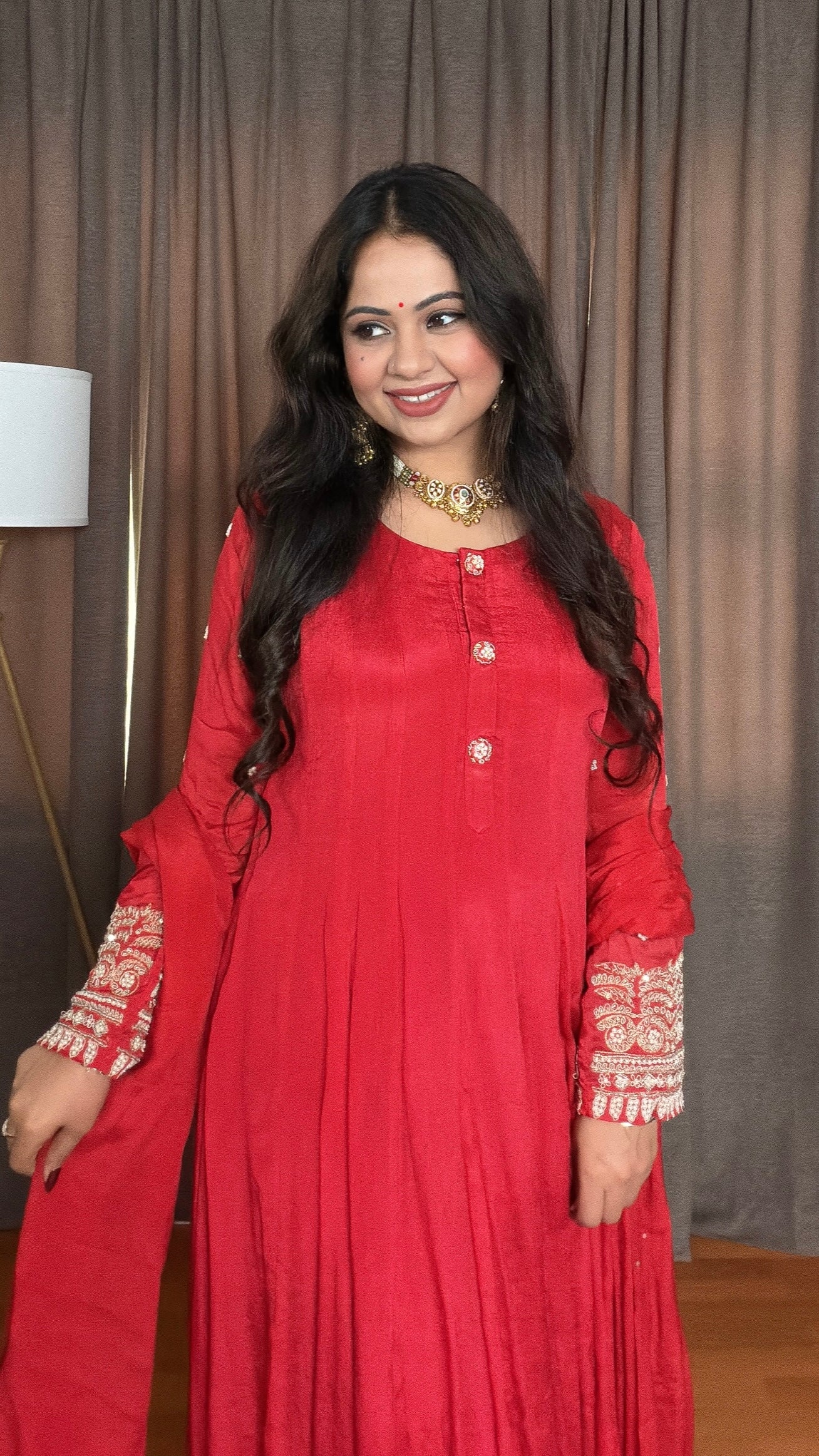 - Silhouette/Fit: Floor-length Anarkali with graceful drape and flattering fall.