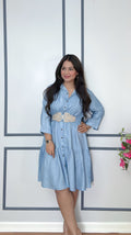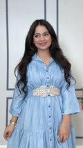 Elevate your casual wardrobe with the Denim Drape Soft Cotton Belted Dress. Crafted from breathable cotton denim, this dress offers effortless comfort while keeping your style on point. The attached belt accentuates your waist, creating a flattering silhouette, while the 35-inch length ensures versatility for day-to-day wear or weekend outings. Perfect for brunches, casual meet-ups, or strolling around town, this dress combines relaxed charm with chic details.