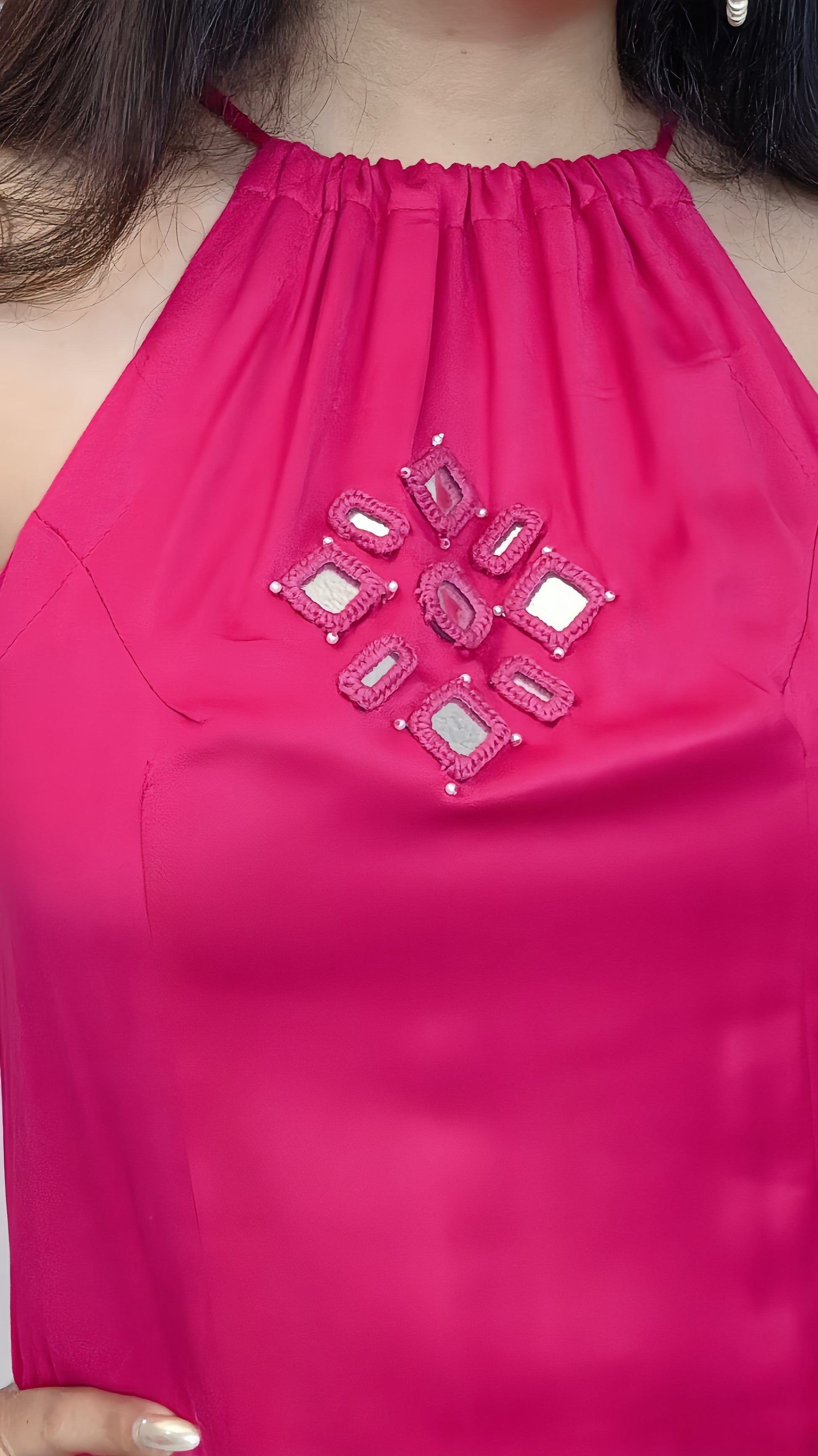 Trendy Halter Design: The halter neck adds a modern and flattering touch to your outfit