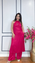 Elevate your style with this chic Dola Silk Halter Co-ord Set, designed for modern elegance and ultimate comfort. Featuring a trendy halter neck top and matching bottom, this set combines luxurious Dola Silk with a flattering fit. Perfect for casual events, brunches, or a day out in style.