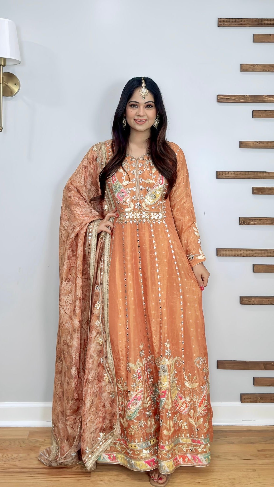 - The gown is tailored in a flowing Anarkali style for feminine ease and comfort, making it the ideal dress for formal parties, weddings, and grand occasions.