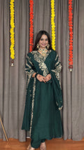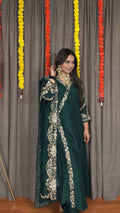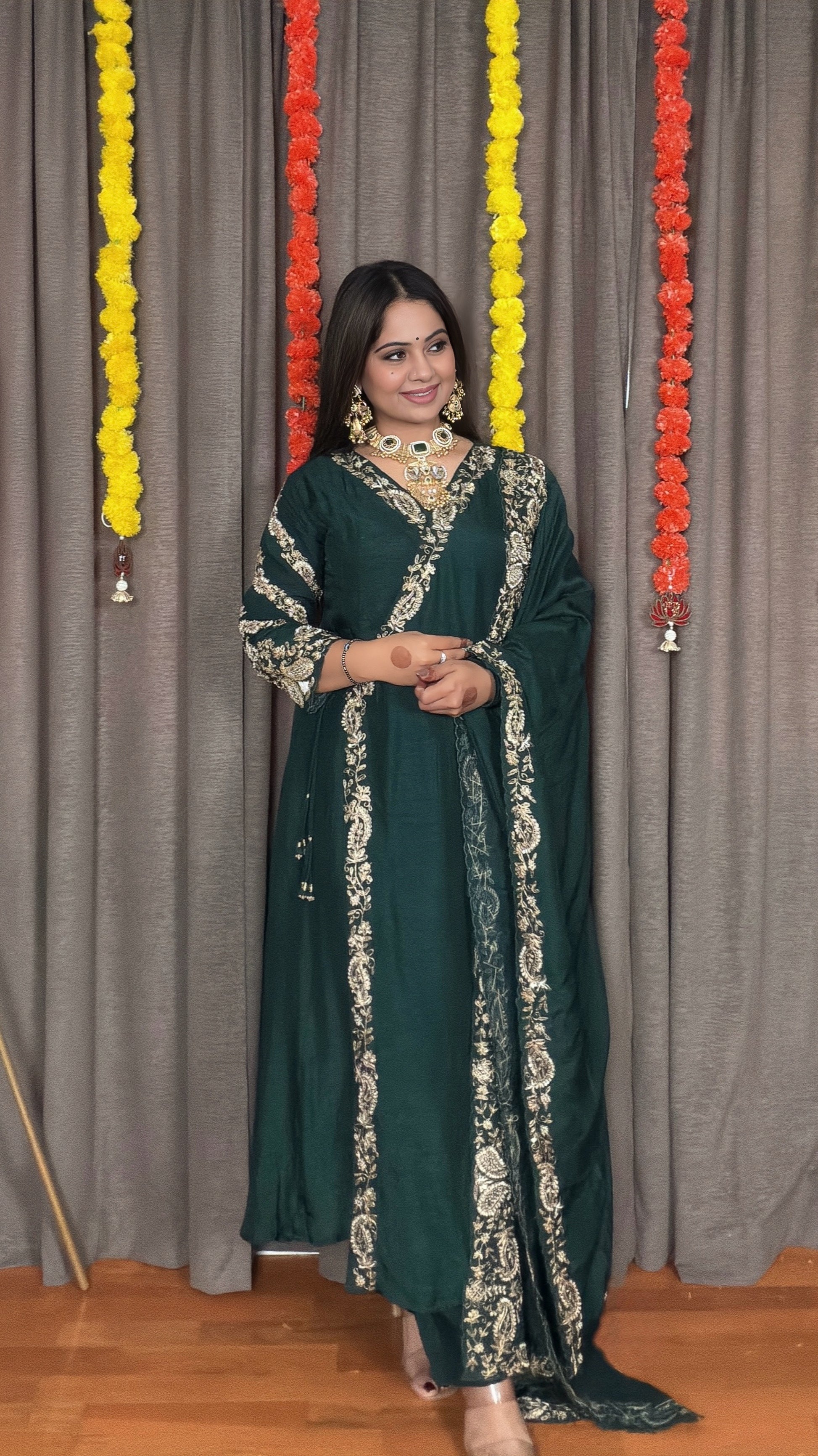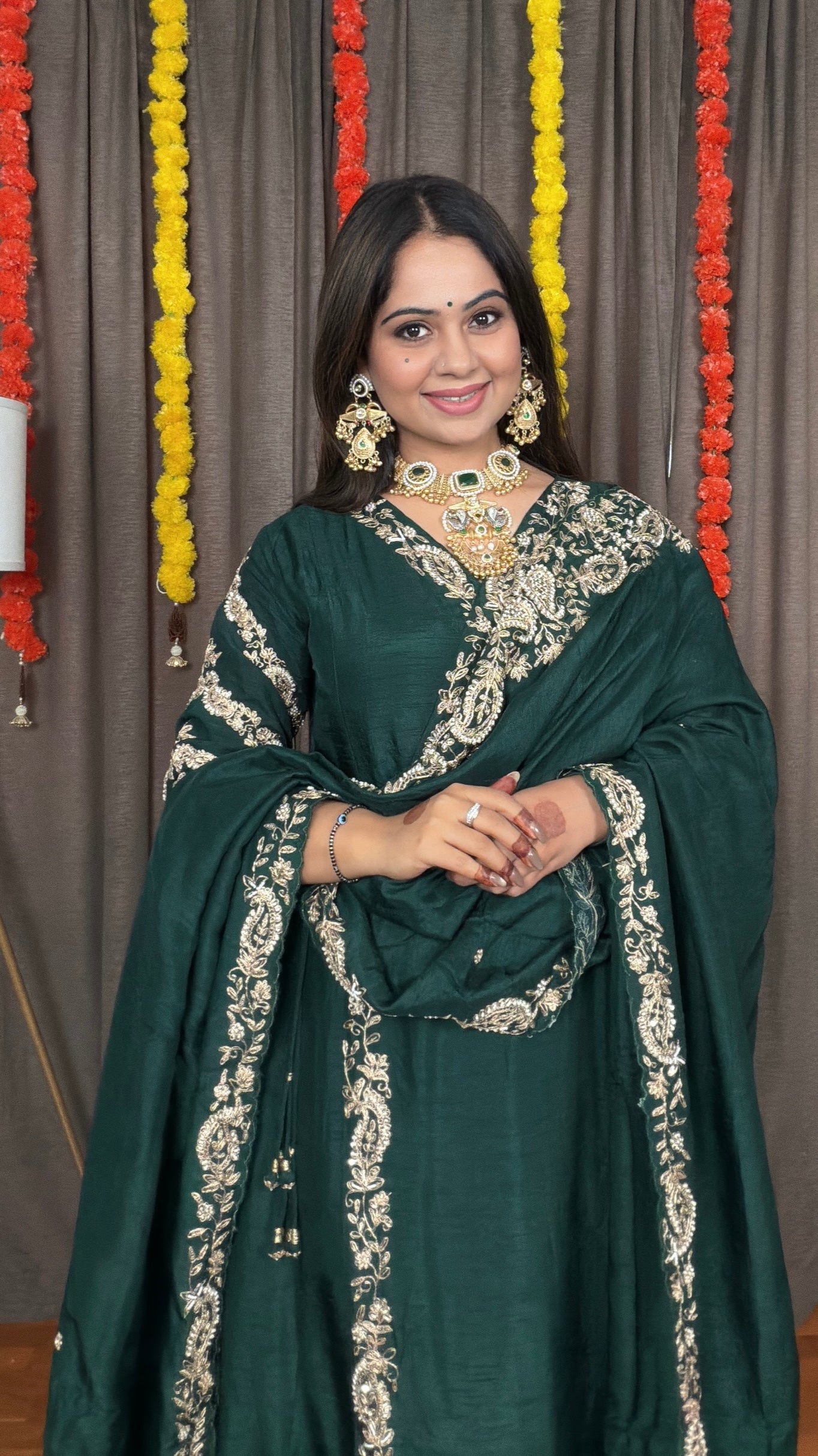 Inaya – Emerald Green Dola Silk Angrakha Anarkali Set