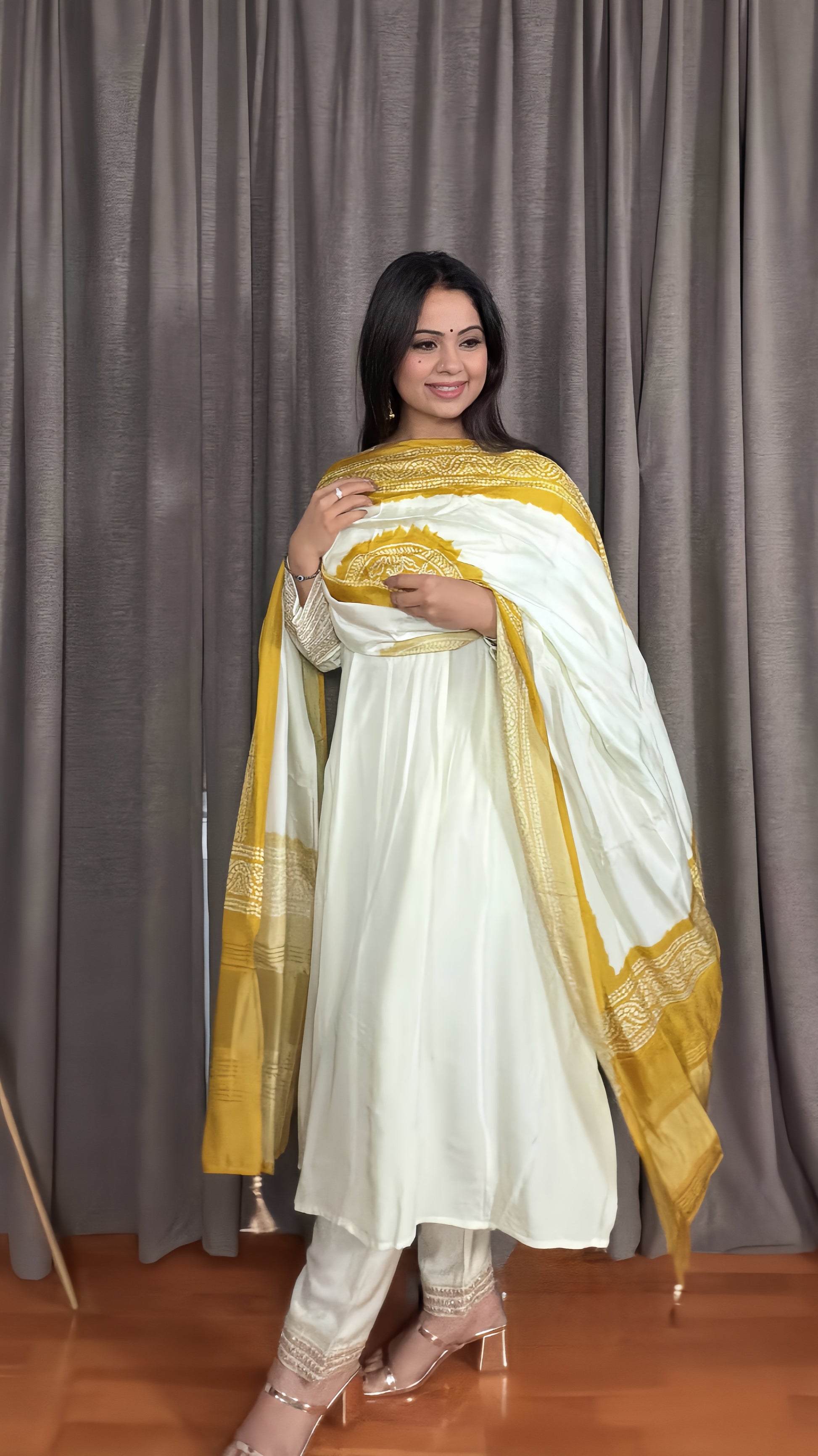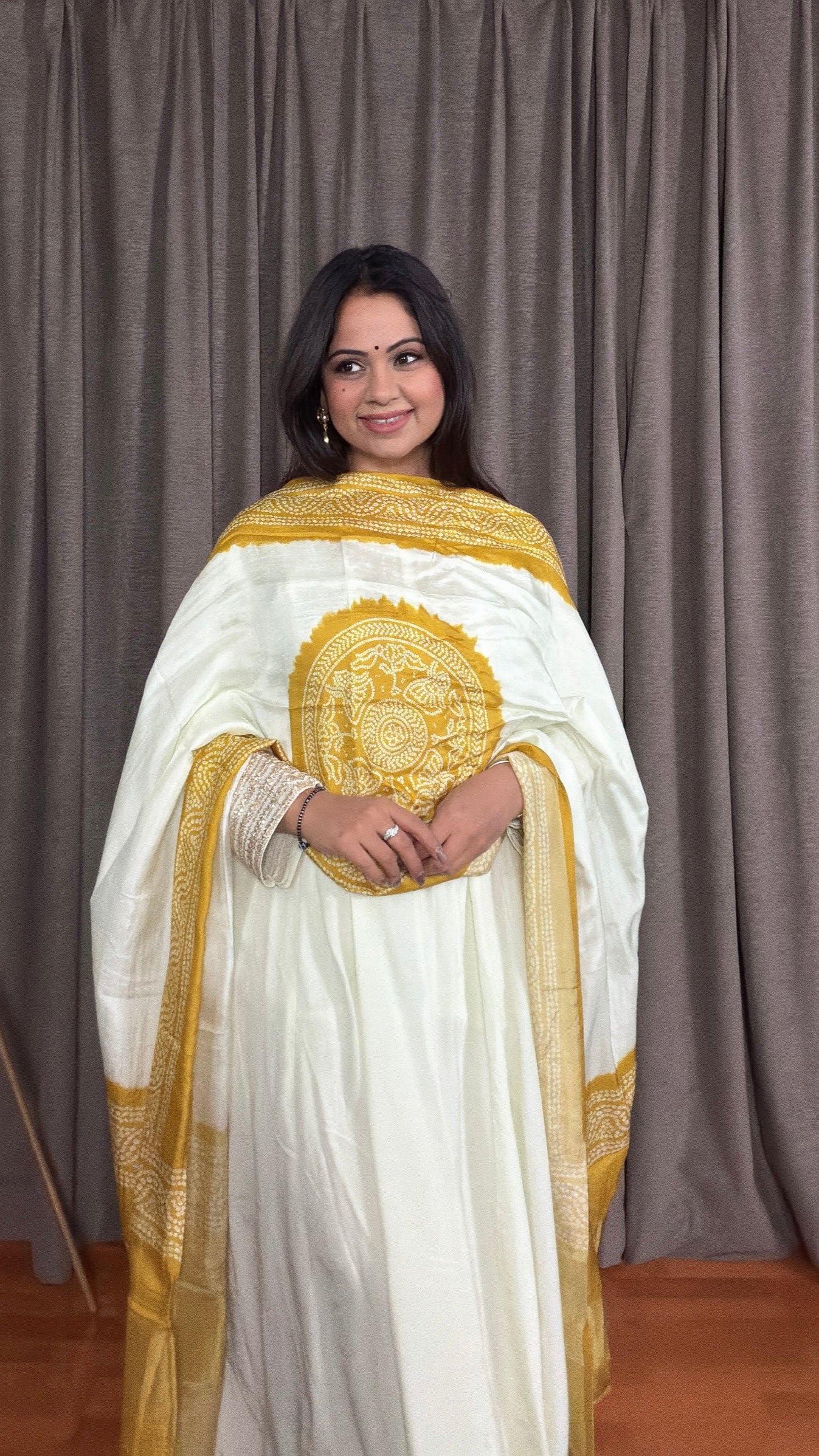 - Color: Ivory with bandhini printed Dupatta