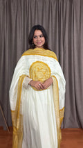 Grace meets sophistication in Nairika, a muslin silk ensemble designed for festive elegance. The soft ivory Anarkali pairs beautifully with a yellow bandhini printed dupatta, creating a luminous and regal look that’s perfect for celebrations and gatherings. The lightweight fabric drapes effortlessly, making it ideal for long hours of wear while keeping you radiant and comfortable.