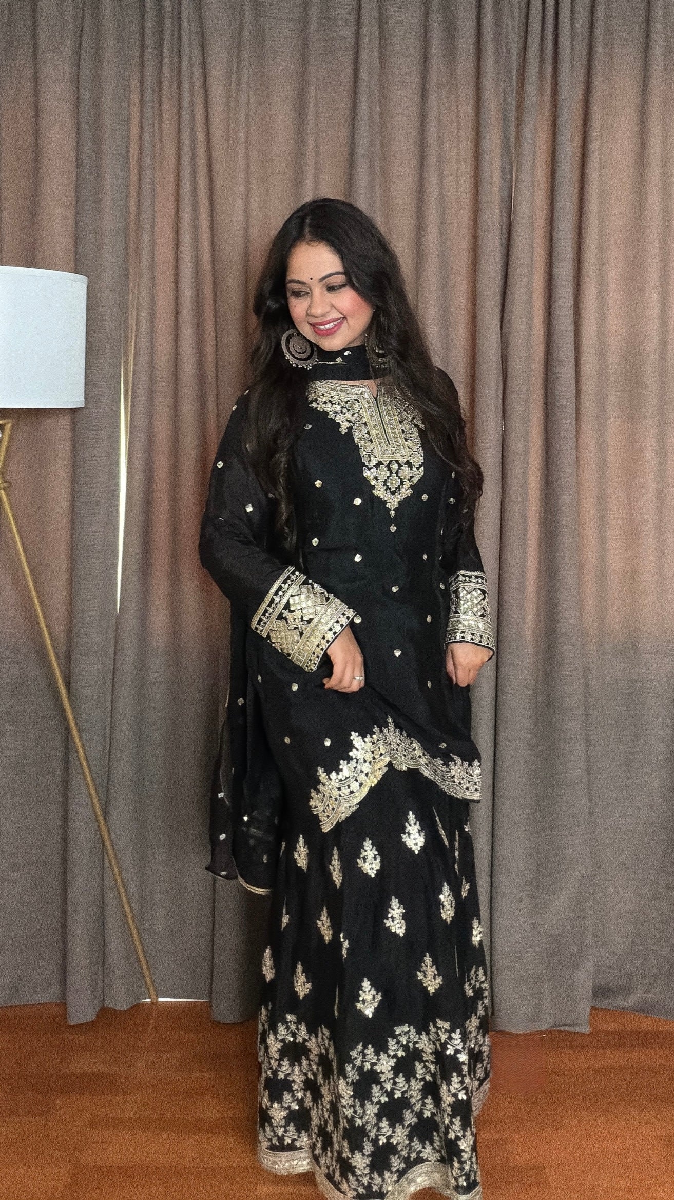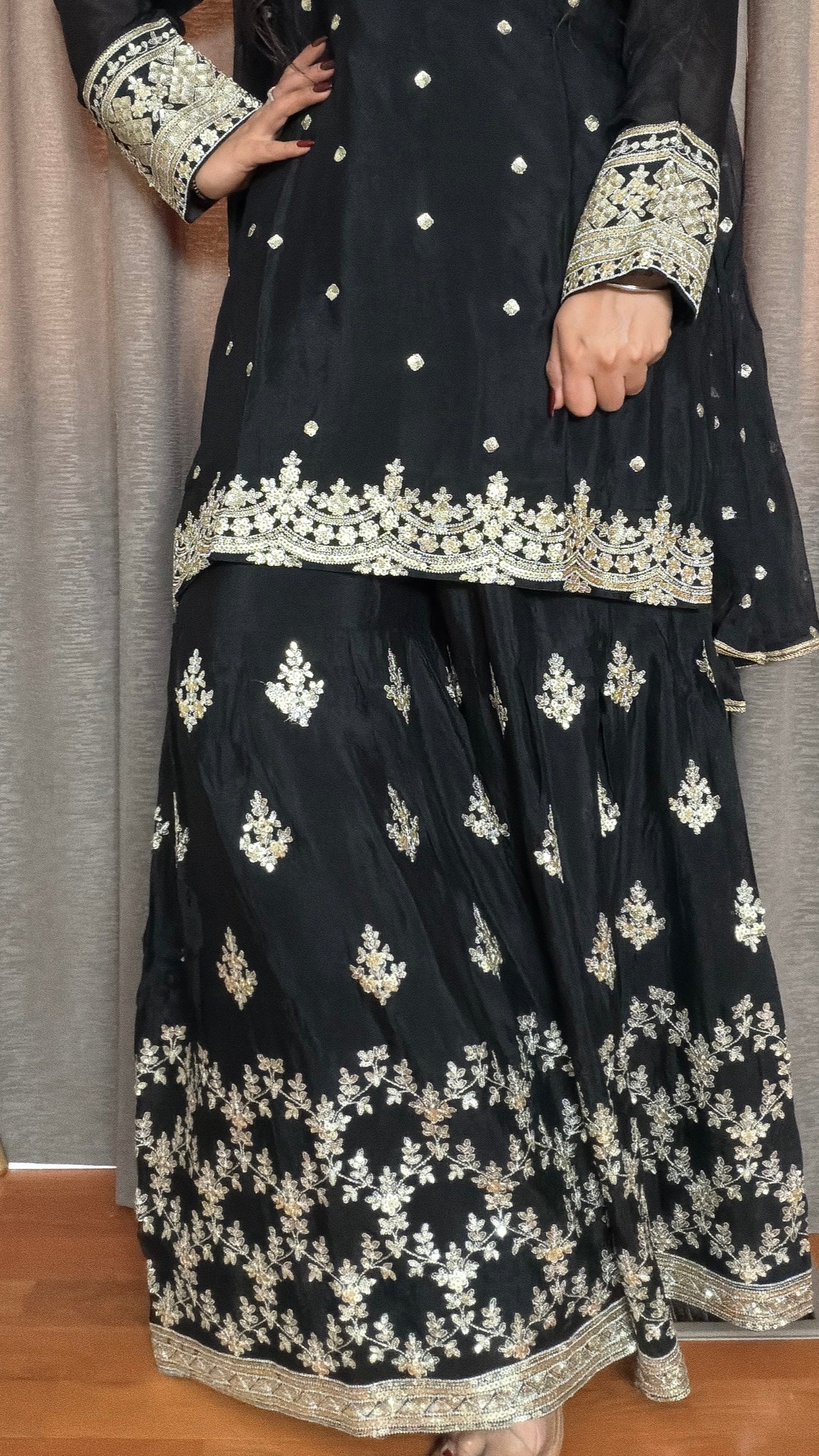 - Classic Silhouette: Short kurta with gharara for a traditional yet modern appeal.