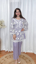 Indulge in the luxurious elegance of the Opulent Glow Muslin Silk Co-ord Set. This stunning set, made from soft Muslin Silk, features intricate thread and pearl embroidery, creating a refined, sophisticated look. Perfect for both casual events and semi-formal gatherings, this set will ensure you shine with effortless style.
