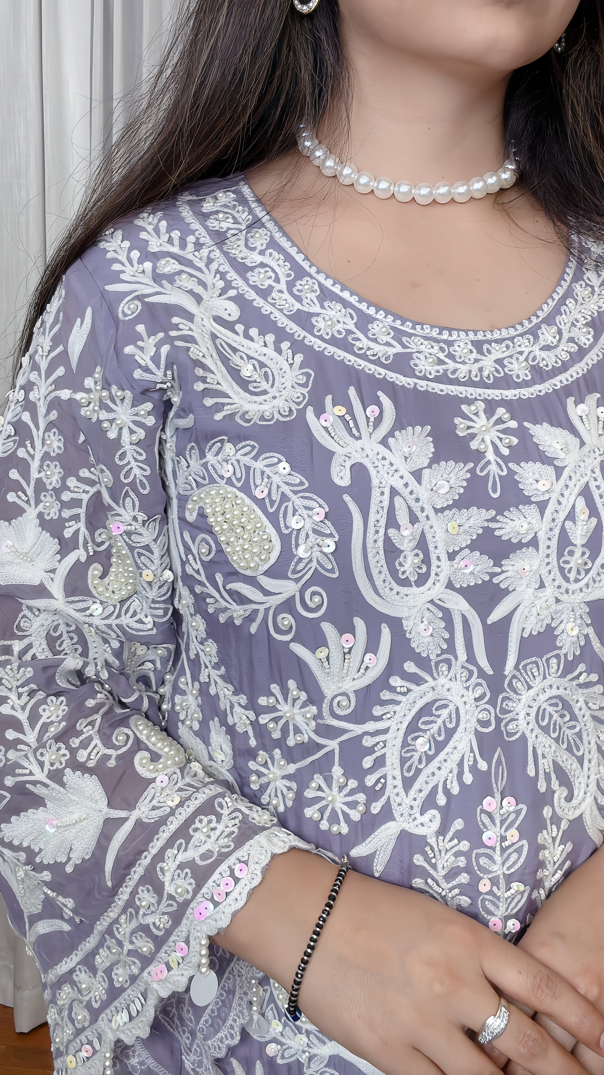 Elegant Thread and Pearl Embroidery: Intricate detailing with thread and pearl embroidery adds a touch of elegance and charm