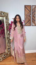 Embrace soft elegance with this blush pink tissue shimmer kaftan dress, designed to bring a delicate glow and timeless charm to your festive wardrobe. The soothing blush tone paired with intricate embroidery detailing creates a graceful and feminine look perfect for special occasions.