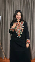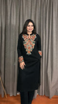 Ruhani brings together winter warmth and Kashmiri-inspired elegance. Crafted from soft premium wool, this black kurta features intricate multi-thread embroidery across the neckline and cuffs — adding a rich burst of color to a classic silhouette. A graceful pick for cozy gatherings or festive evenings, it’s the perfect blend of comfort and charm.