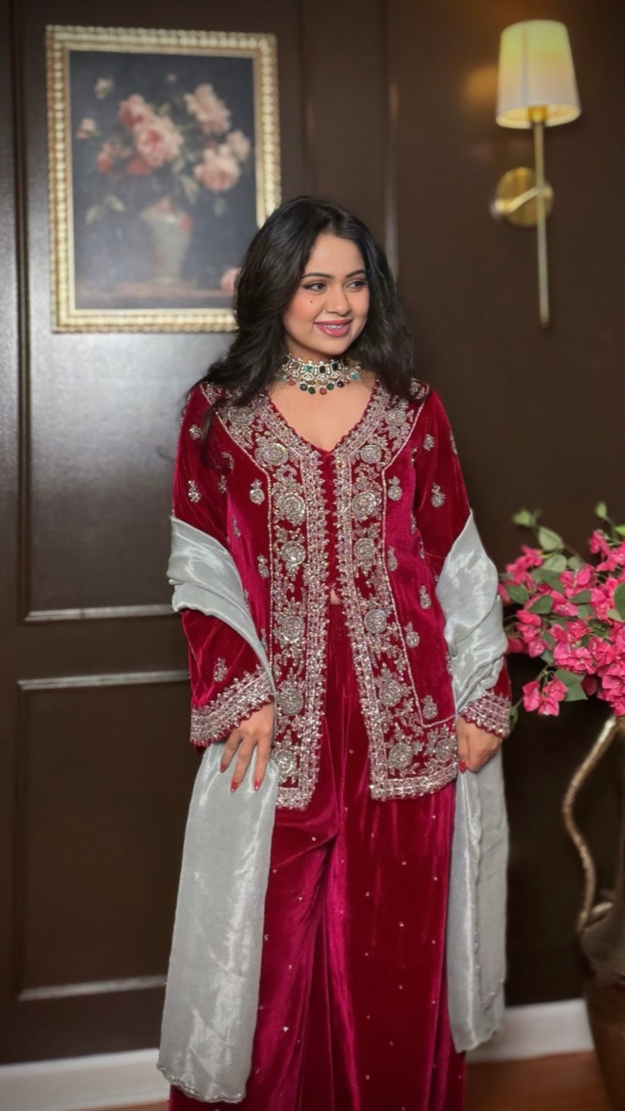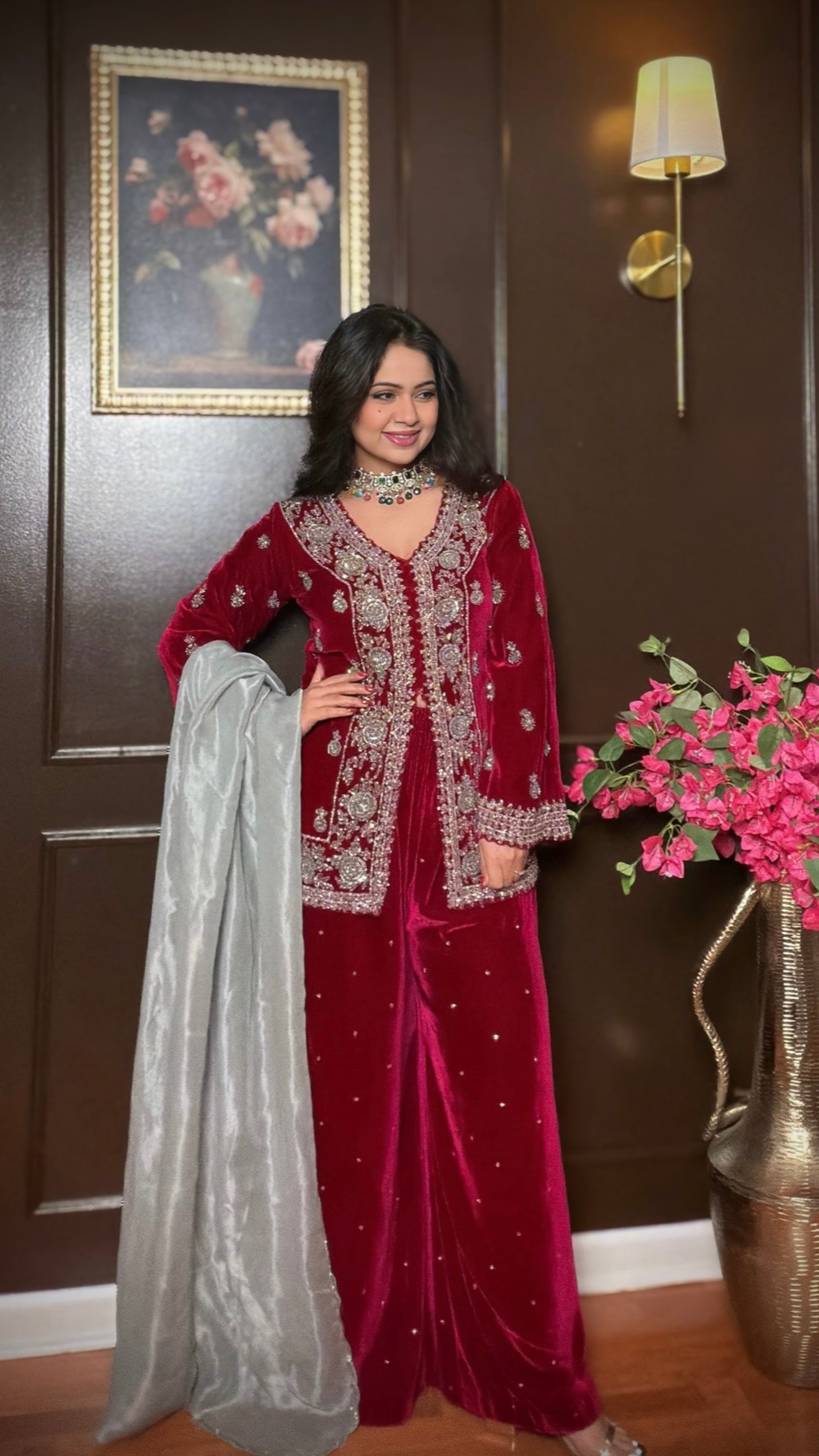- Fabric (Kurta & Palazzo): Premium velvet