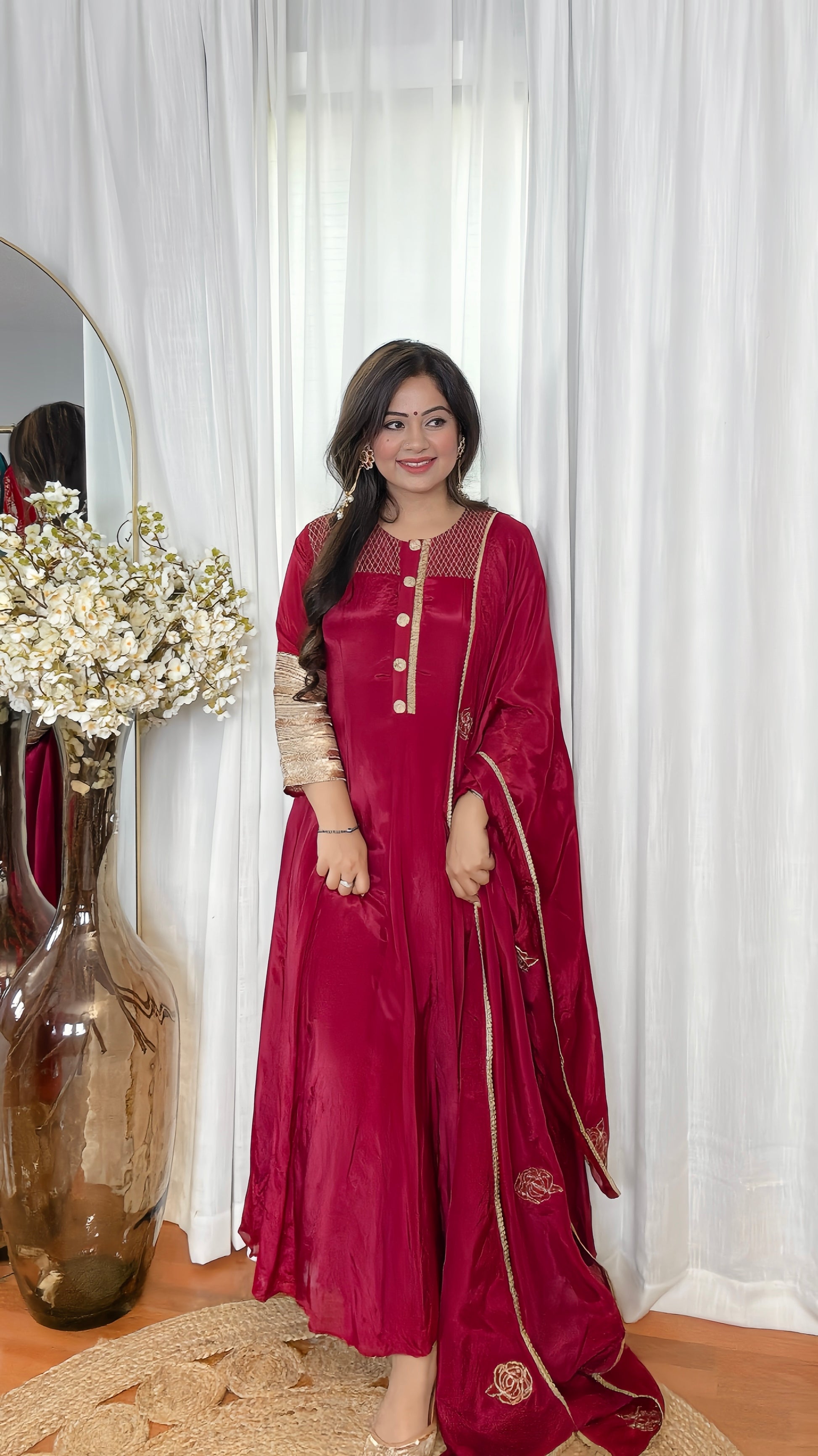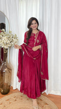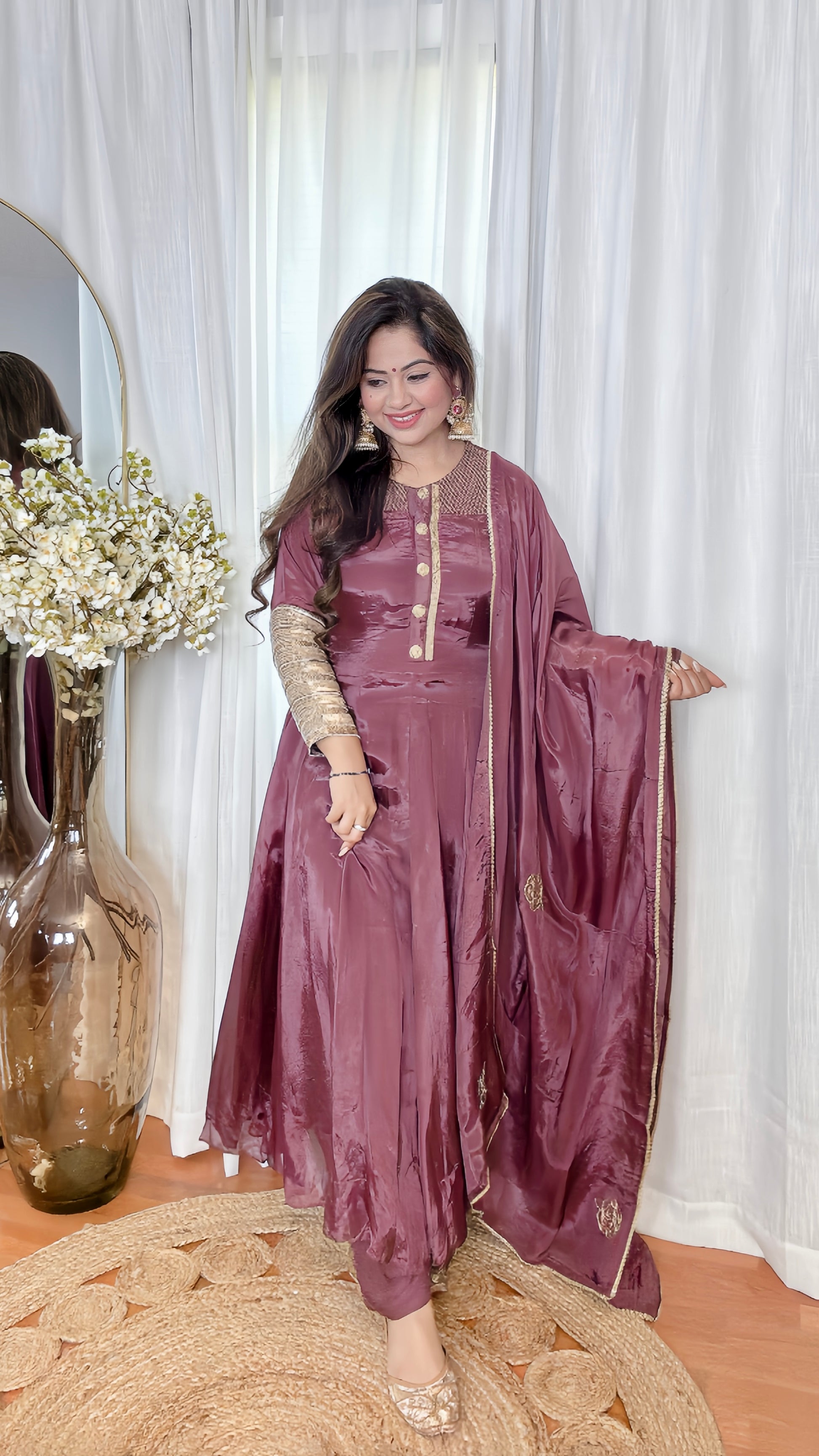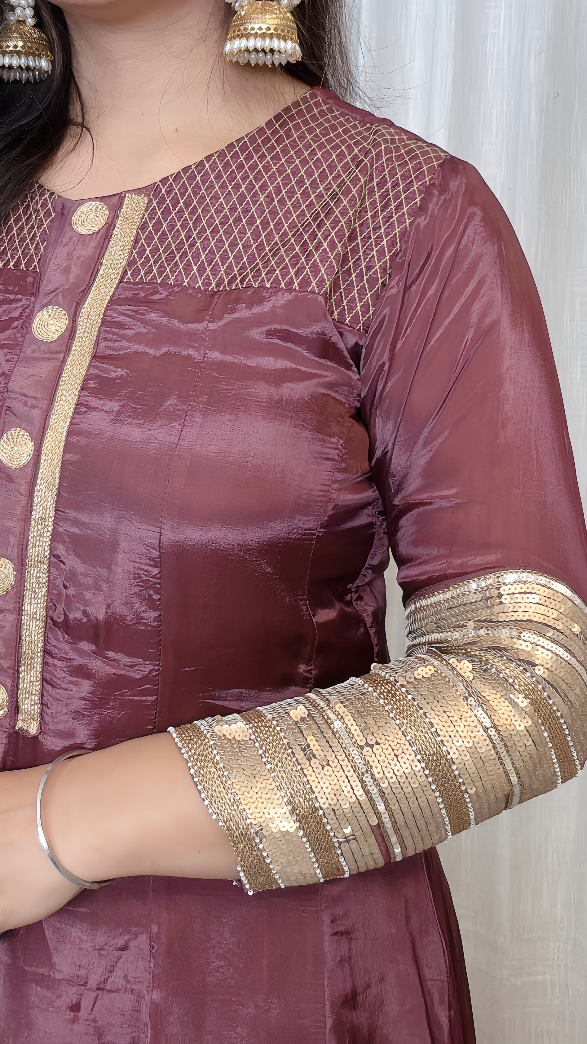 Turn heads with this flowy and elegant Crepe Silk Anarkali Suit, beautifully adorned with sequins, pearl, and zari embroidery. Crafted for grace and sophistication, the silhouette features a flattering full-length Anarkali cut (48 inches) with a soft inner lining for comfort. Paired with a lightweight muslin organza dupatta, this ensemble is a perfect blend of tradition and modern finesse—ideal for weddings, festivities, or special evenings.