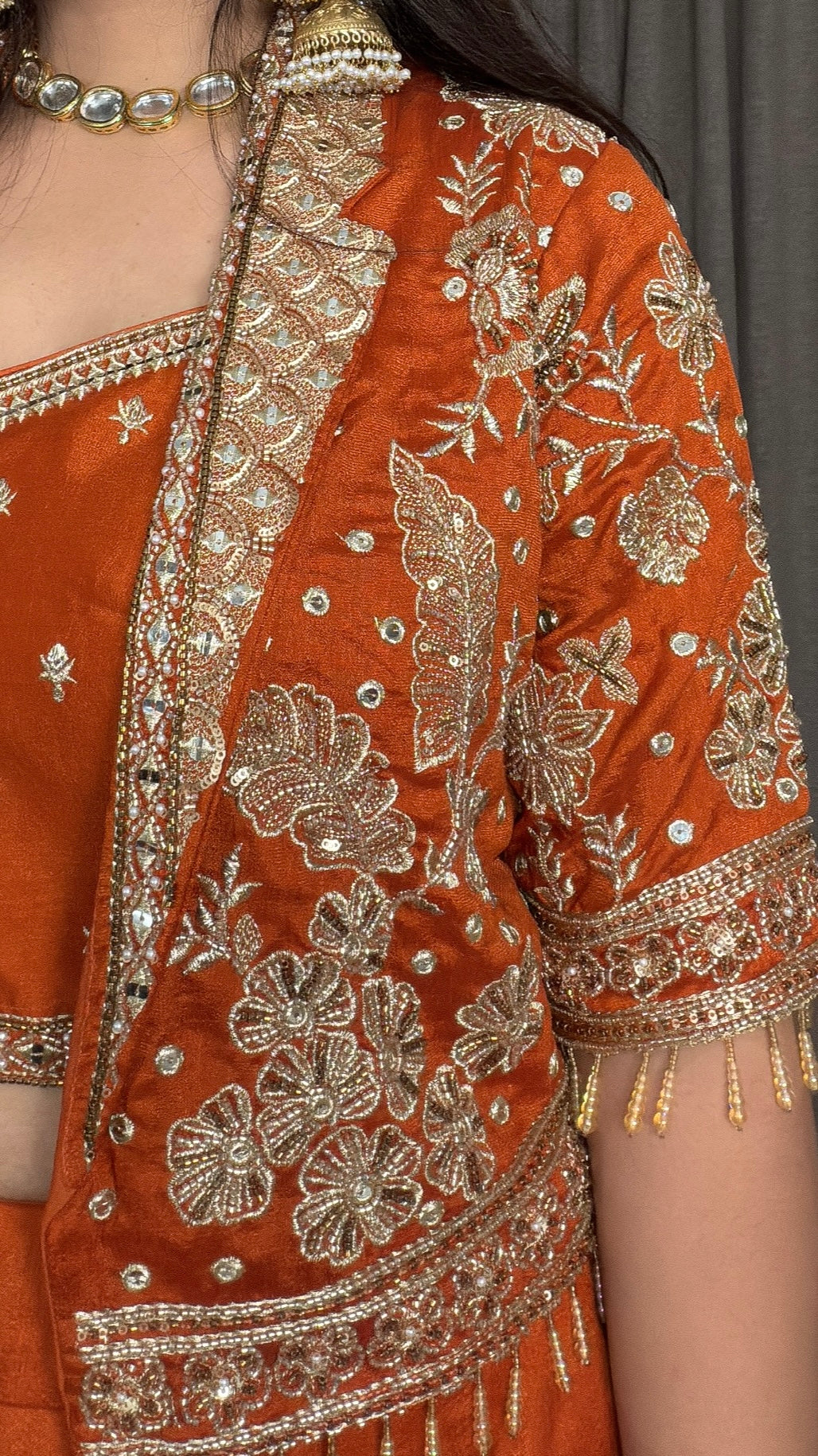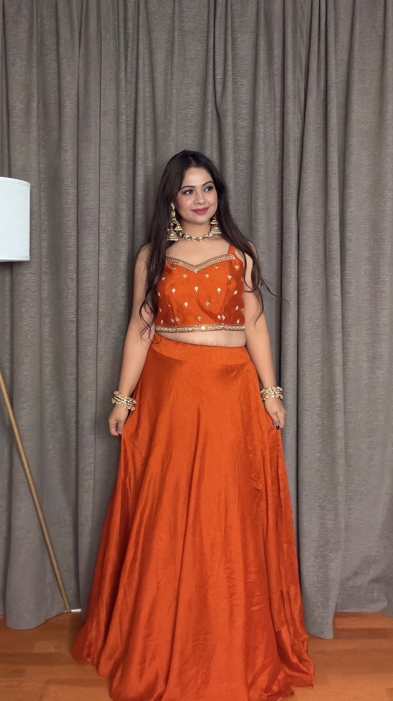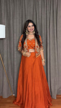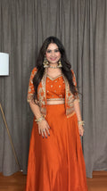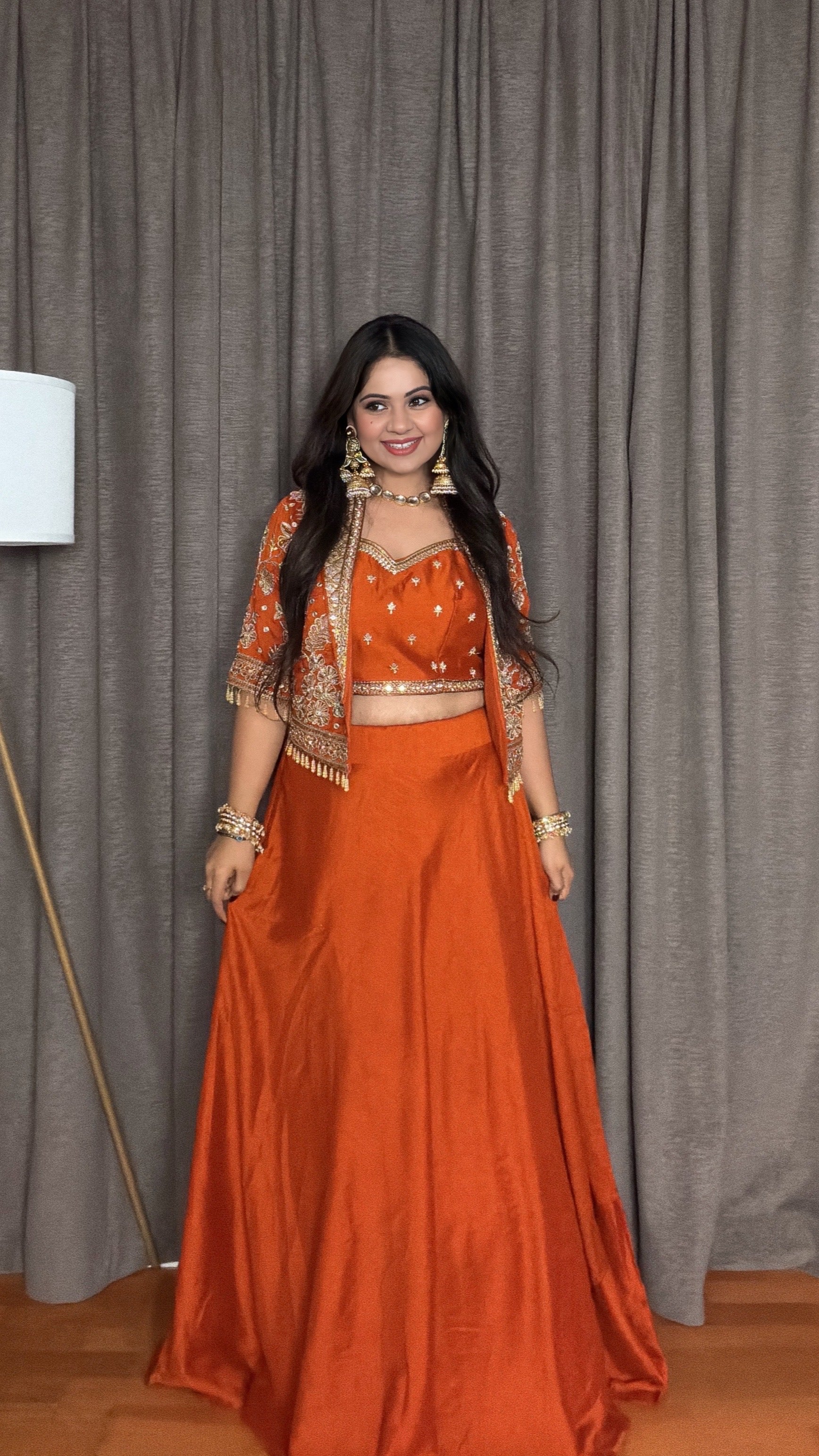 Step into the festive season with Tara Rustique, a stunning rust orange three-piece fusion ensemble that exudes warmth, elegance, and contemporary charm.