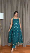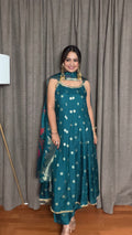 Teal Bloom – Dola Silk Anarkali Suit