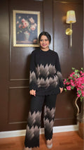 Virel is a stylish winter cord set crafted in soft knitted wool, designed for women who love bold patterns with everyday comfort. The coordinated top and pants feature a modern woven design that adds character while keeping the look cozy and effortless. Ideal for winter days when you want warmth without sacrificing style.