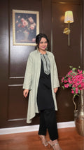 Zayelle is a cozy winter ensemble crafted in soft knitted wool, designed for everyday comfort with a refined look. The long knitted outer layer provides warmth without feeling heavy, while the inner kurta and pants complete a polished, easy-to-style outfit. Perfect for winter days when you want comfort, layering, and understated elegance together.
